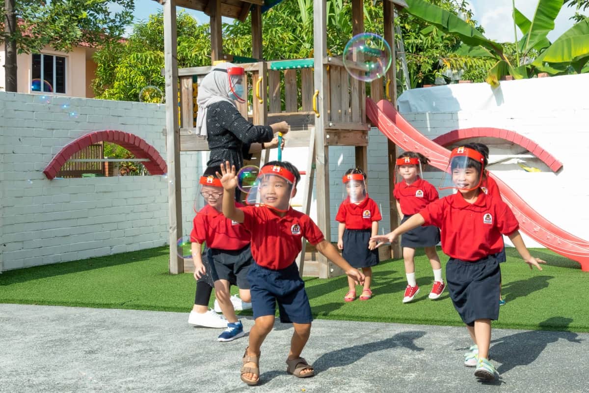 Housed in a residential sanctuary, MapleBear Kovan operates out of a two-storey brick-walled estate with nature-inspired features. We are located near two large outdoor playgrounds at Aroozoo Park and Surin Avenue, where we get to venture out on daily explorations and sunny adventures. Our centre includes a garden yard with an outdoor playground, a Balinese-style water spa, a lush edible fruit garden, a micro-vegetable farm, and conducive learning classrooms. We believe the environment is an important secondary teacher and in the importance of outdoor play.